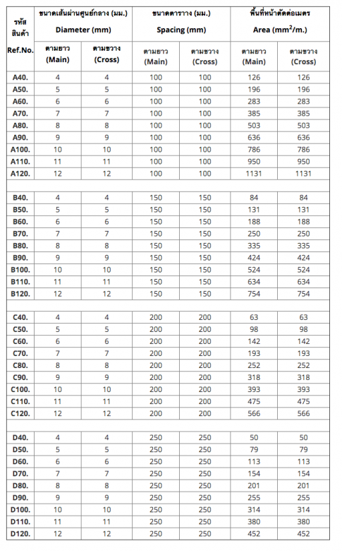 ศูนย์รวมเหล็กเส้น ราคาขายส่ง เหล็กข้ออ้อย สมุทรปราการ, ขายเหล็ก, เหล็กราคาส่ง, เหล็กก่อสร้าง, เหล็กรูปพรรณ ราคาส่ง เหล็กสำหรับงานอุตสาหกรรม งานวิศวกรรมโรงกลึง และงานช่างกลโรงงาน ราคาถูกกว่าท้องตลาด  เรามีบริการจัดส่งทั่วพื้นที่ เช่น สมุทรสาคร ชลบุรี  ระยอง  ปราจีน สระบุรี ฉะเชิงเทรา ปทุมธานี มอก. 24-2559 ขนาดเหล็กข้ออ้อยเกรดSD40ความยาว10ม. เหล็กข้ออ้อย 10 มม. เกรดSD40 ความยาว10ม. น้ำหนัก6.17กก. เหล็กข้ออ้อย 12 มม. เกรดSD40 ความยาว10ม. น้ำหนัก8.88กก. เหล็กข้ออ้อย 16 มม. เกรดSD40 ความยาว10ม. น้ำหนัก15.78กก. เหล็กข้ออ้อย 20 มม. เกรดSD40 ความยาว10ม. น้ำหนัก24.66กก. เหล็กข้ออ้อย 25 มม. เกรดSD40 ความยาว10ม. น้ำหนัก38.53กก. เหล็กข้ออ้อย 28 มม. เกรดSD40 ความยาว10ม. น้ำหนัก48.34กก. ขนาดเหล็กข้ออ้อยเกรดSD40ความยาว12ม. เหล็กข้ออ้อย 10 มม. เกรดSD40 ความยาว12ม. น้ำหนัก7.4กก. เหล็กข้ออ้อย 12 มม. เกรดSD40 ความยาว12ม. น้ำหนัก10.656กก. เหล็กข้ออ้อย 16 มม. เกรดSD40 ความยาว12ม. น้ำหนัก18.936กก. เหล็กข้ออ้อย 20 มม. เกรดSD40 ความยาว12ม. น้ำหนัก29.592กก. เหล็กข้ออ้อย 25 มม. เกรดSD40 ความยาว12ม. น้ำหนัก46.236กก. เหล็กข้ออ้อย 28 มม. เกรดSD40 ความยาว12ม. น้ำหนัก58.008กก.   เหล็กข้ออ้อยที่ดีเป็นอย่างไร การเลือกเหล็กเส้นข้ออ้อยที่ดีขึ้นอยู่กับชนิดของโครงสร้างเป็นสำคัญ ลักษณะของเหล็กเส้นข้ออ้อยที่ดีคือ ควรมีระยะบั้งเท่ากัน และสม่ำเสมอตลอดทั้งเส้น ไม่มีตำหนิ ไม่มีสนิม ไม่มีรอยแตกร้าว ไม่ปริแตกง่าย หักง่าย น้ำหนักและเส้นผ่านศูนย์กลางถูกต้อง   ครีบและบั้งของเหล็กข้ออ้อยคืออะไร? เหล็กข้ออ้อยจะมีความแตกต่างจากเหล็กเส้นกลมอย่างเห็นได้ชัดคือครีบและบั้งซึ่งจะเป็นส่วนที่ช่วยเพิ่มการยึดเกาะของเหล็กกับเนื้อคอนกรีตให้มีประสิทธิภาพมากขึ้น และการสังเกตคือ "บั้ง" จะต้องมีระยะที่เท่ากันยาวตลอดทั้งเส้น และจะต้องทำมุมไม่ต่ำกว่า 45 องศาอยู่ระหว่างบั้งกับแกนของเหล็กเส้นข้ออ้อย "ครีบ" จะต้องมีอยู่กึ่งกลางระหว่างบั้งตลอดทั้งเส้น